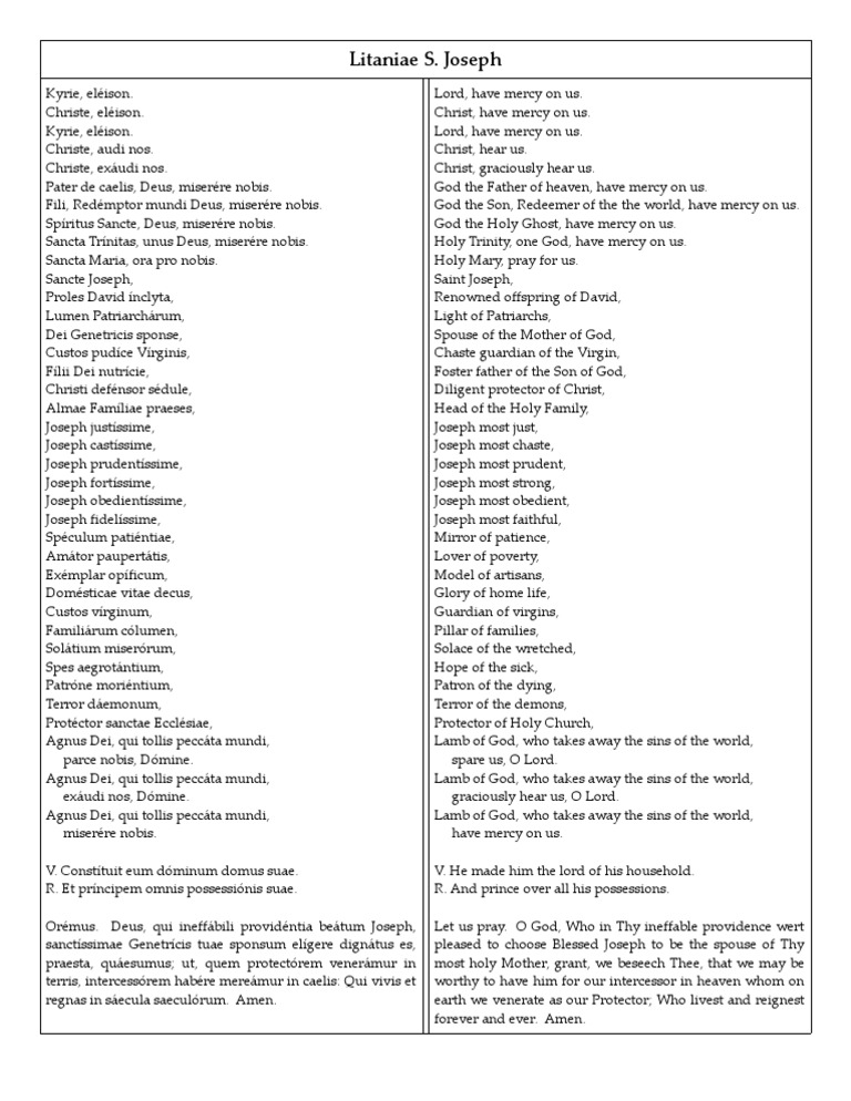 LITANY OF SAINT JOSEPH LATIN Kyrie eleison. A partial indulgence is available for its recitation at any time. Litany Of Saint Joseph Pdf.